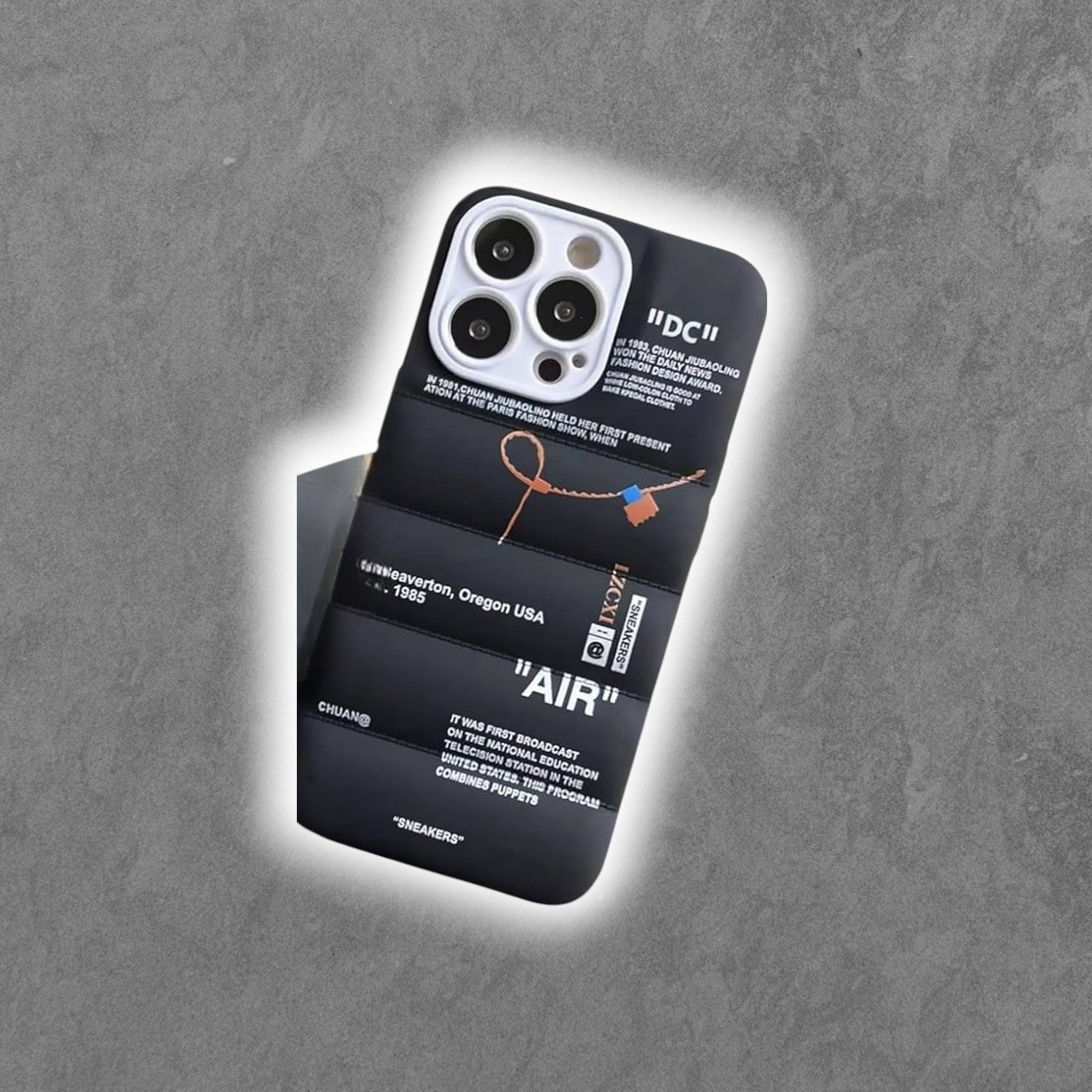 Hot Off Sports Shoes Brand Phone Puffer Case for iPhone Case and Model for 15 14 13 12 Mini 11 X XS Max XR 7 8 Plus Sneakers ins White or Black Label Soft Cover-Black for 15 Pro(Black)